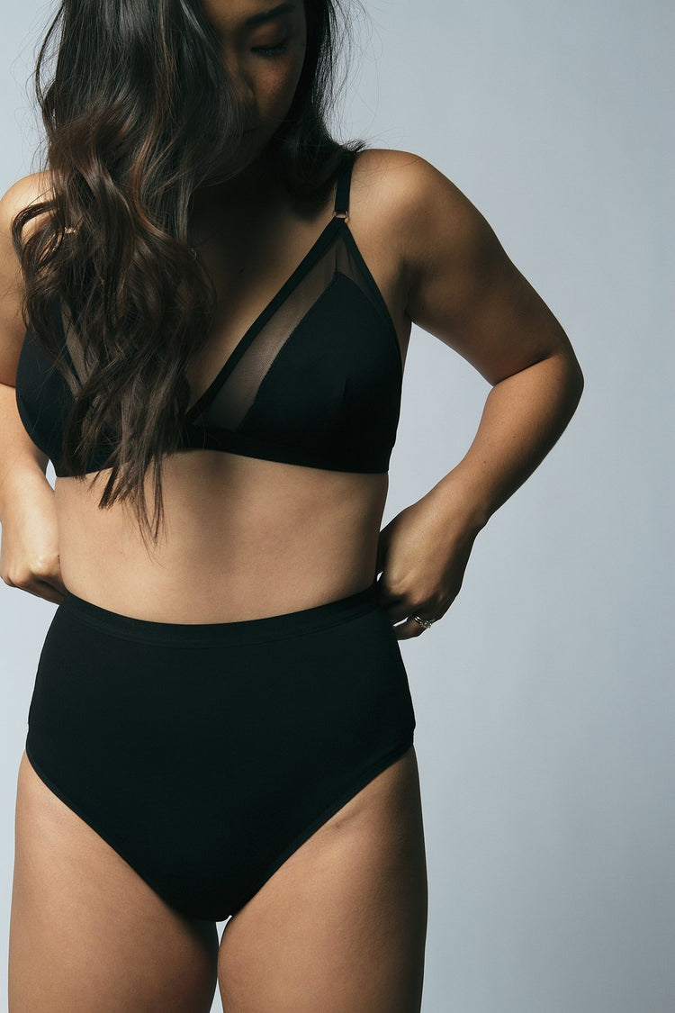 The ideal everyday bralette with soft rayon from bamboo jersey fabric that forms to your natural shape with mesh boarders for extra detail. This bra style offers wider cups for side coverage and a more comfortable overall fit. The mesh boarder adds a little touch of sexiness to a classic design. The fit is snug without causing any discomfort; no padding or underwire.